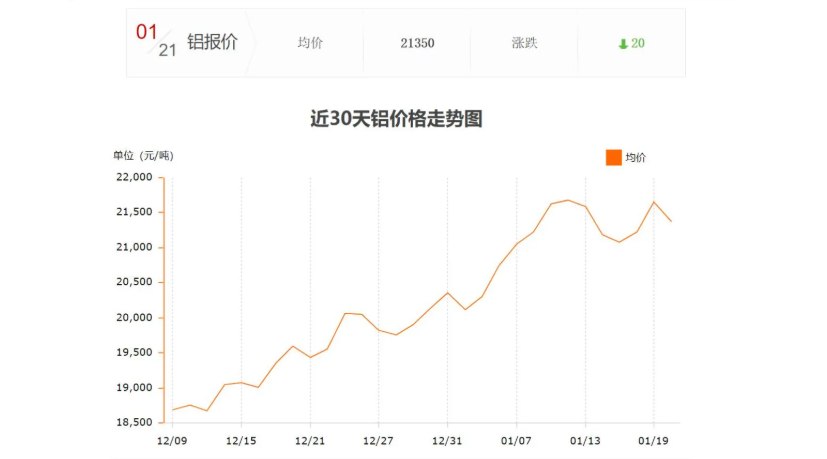 暴跌!今日铝价2.2万+ ;氧化铝价格上涨(2022年2月11日)