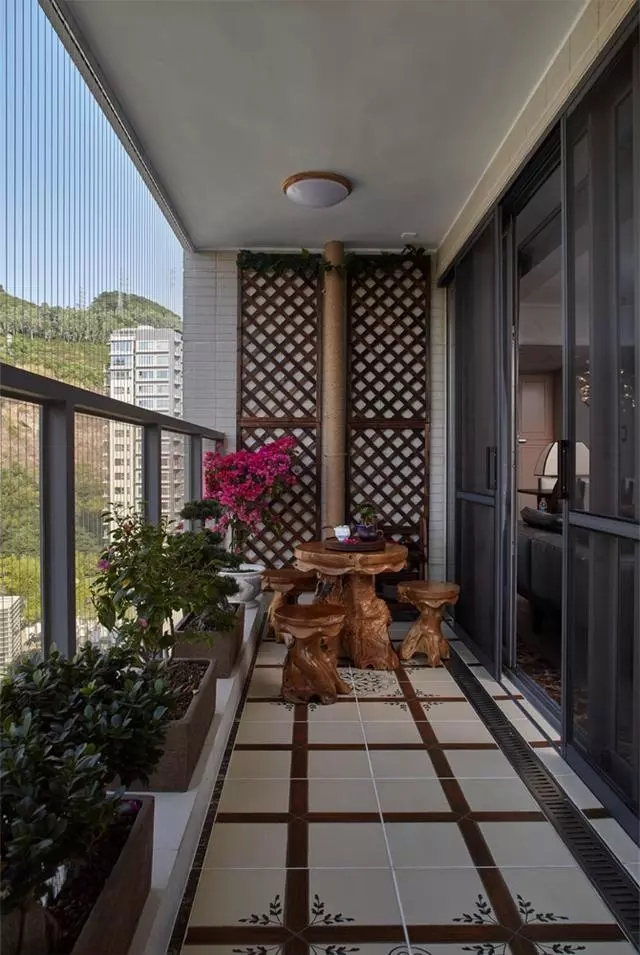 阳台和客厅连为一体,做一个茶室