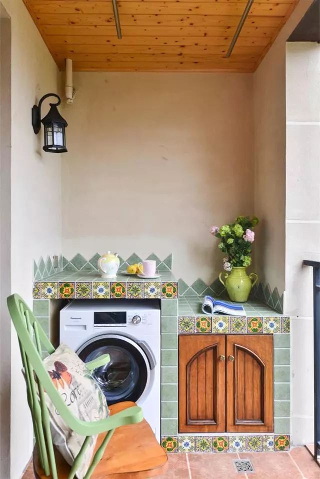 打一个收纳柜,可以放洗衣机,也能喝茶休息