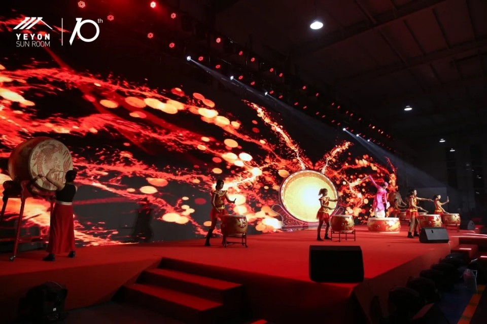最后,在叶阳的检测中心举行了千人晚宴,以酬谢来自五湖四海的行业嘉宾、服务商们对叶阳一直以来的支持。叶阳阳光房董事长熊诗才先生携手叶阳服务商及现场参会嘉宾一同为叶阳庆生。