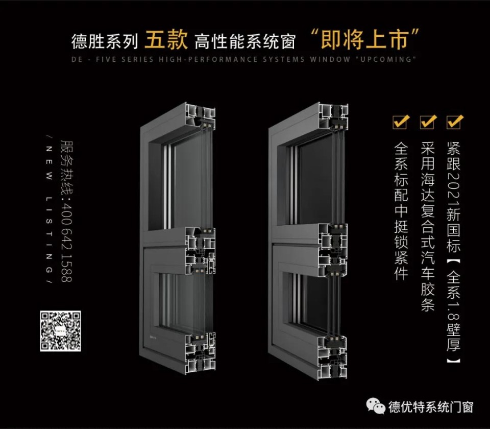 德优特(北京)门窗有限公司面对《北京市居住建筑设计节能标准》的正式执行,积极响应,特别推出五款高性能系统门窗,即将上市,我们打破常规门窗限制,创造出更加节能的系统门窗产品,争做新时代的系统门窗节能先锋。