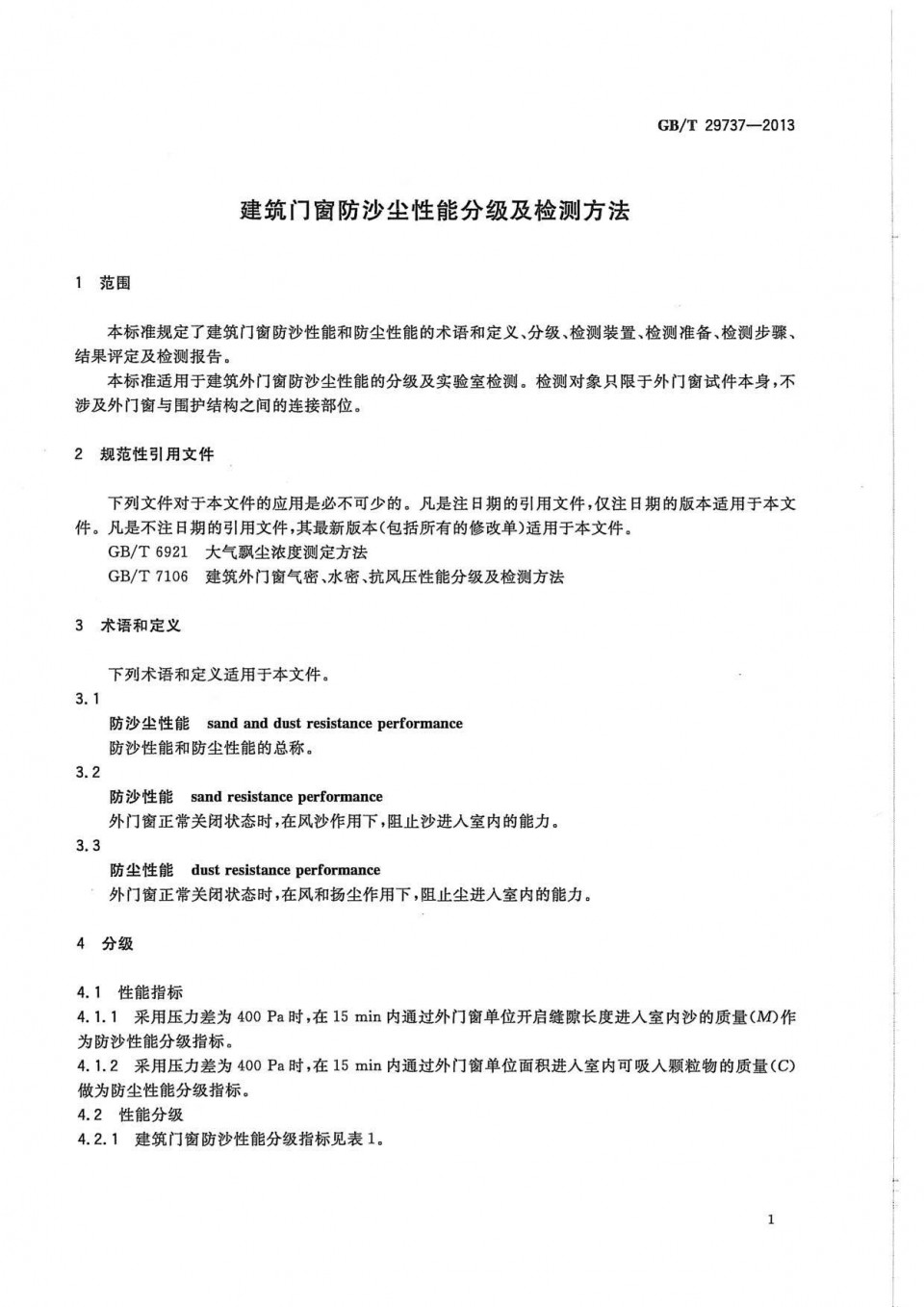 标准全文 | GB/T 29737-2013 建筑门窗防沙尘性能分级及检测方法