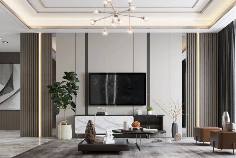 小户型的天花板最好不要装吊顶,如果觉得天花板太过单调,可以设计一些石膏线做点缀。装修的时候,在天花板多设计一些辅助灯具。比如射灯、壁灯、吊线灯来营造灯光氛围,让整个空间看起来敞亮通透。