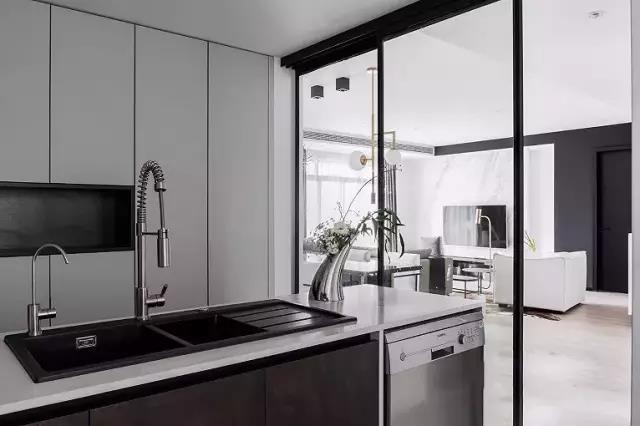 2. 除了用门来做隔断,还可以用柜台来隔断,不但美观,而且柜子也具有一定的收纳作用。